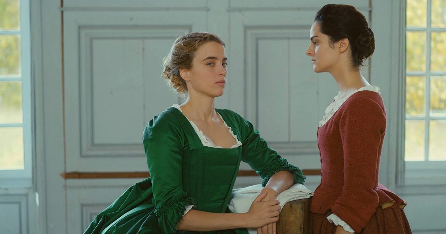Color pairings to rival Substack’s most viral notes were captured first in Céline Sciamma’s Portrait of a Lady on Fire (2019) and are delightful for a crisp winter palette: baby blue on cherry red; icy blue on evergreen. Lavender is always catching my eye as well and I’m going to blame that on my perennial obsession with Ever After (1998).