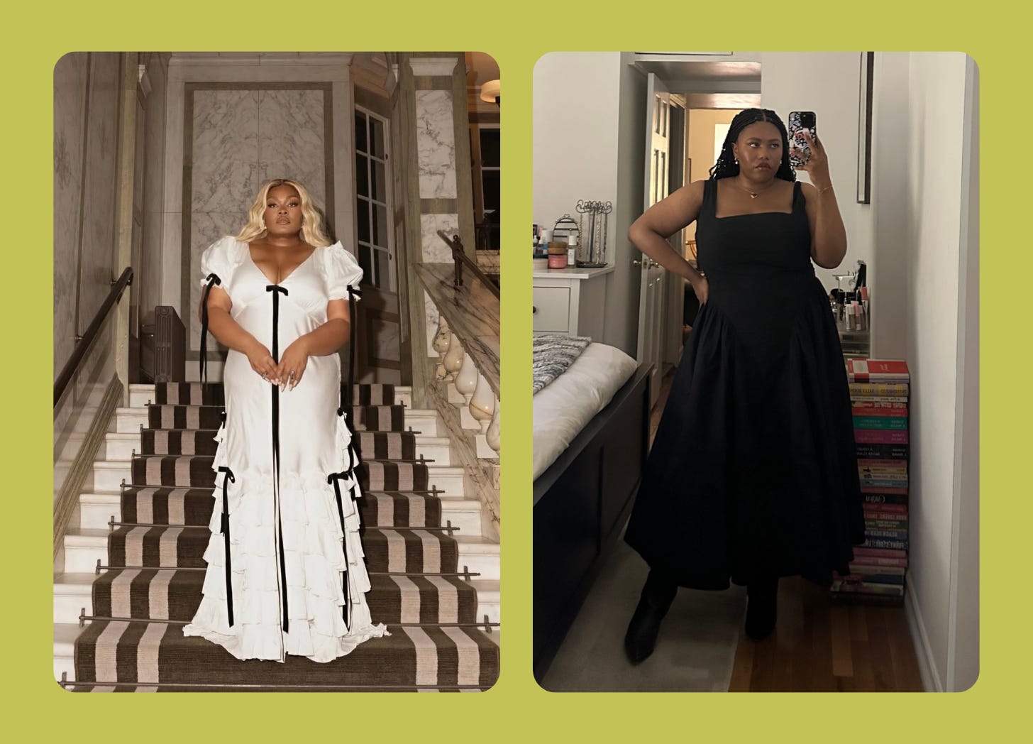 Getting dressed is critical for staying present in my body. The average daily information overload could quickly send a person into an existential crisis. I pray “how are you feeling today?” won’t trigger the same. It’s a good thing my three style words (classic, creative, romantic) can easily be applied to arrange an outfit that feels decidedly “me”. I also love looking to movies, magazines, and old mirror selfies for some style inspiration when I need it.